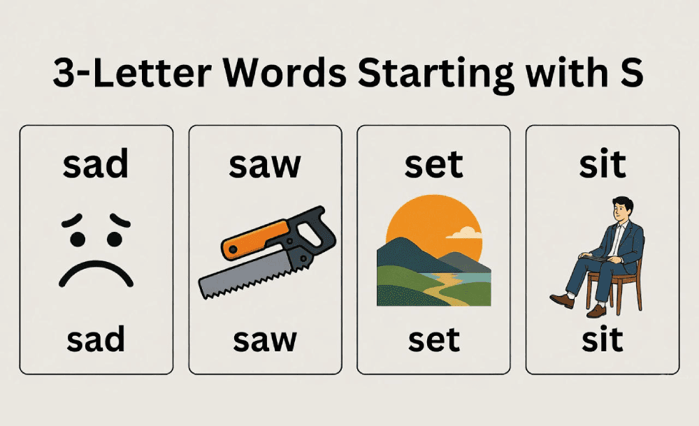 Three-letter words beginning with S are some of the most widely used in everyday English. They appear in conversations, books, games, instructions, and even in digital messaging. Because many of them describe actions (“see,” “sit,” “say”), objects (“sun,” “sea”), or people (“son”), they form the building blocks of useful and practical communication. For learners, mastering these short words makes English easier, smoother, and more intuitive.
