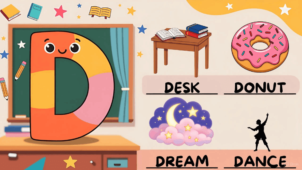 The letter D is one of the earliest consonants learned by developing speakers and readers. In English, D-words show up across emotional vocabulary (“dream,” “doubt”), action verbs (“drive,” “dance”), descriptive adjectives (“dull,” “dense”), and concrete nouns (“desk,” “donut”). This makes them practical for every age group—from school learners to adults preparing for language exams or playing word games.