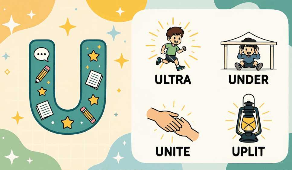 For one, U is one of the most versatile vowels. It can slide between sounds—short “uh,” long “you,” soft “oo,” or even blended forms like “yu.” Because of that flexibility, words beginning with U come in a wide range of tones and meanings. Many of them describe movement (usher, unfold), improvement (upgrade, uplift), or relationships (union, unify). They also tend to appear in more advanced reading, which means learning them helps you level up fast.